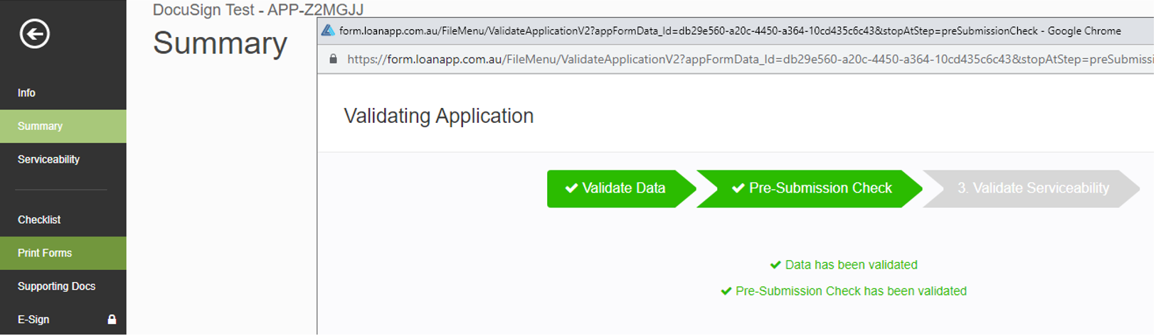 2. Validate the Application and Generate the Print Forms prior to E-Sign